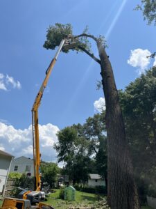 Two years earlier we had rented a 45-foot lift to trim the dead branches out of the same trees as falling branches were a hazard and we wanted to let more sunlight into my son’s back yard.  Having gained some confidence after the earlier job, we decided to rent a construction lift platform with a 60-foot platform.